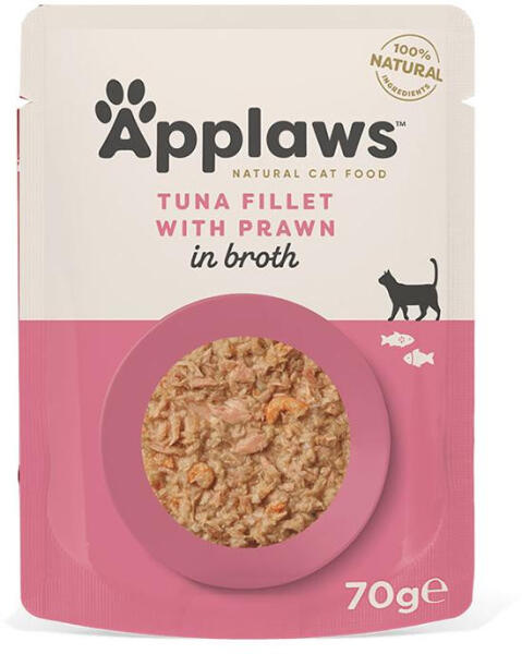 Az Applaws Cat Tonhal Filé Garnélával kizárólag természetes alapanyagokból készült prémium minőségű kiegészítő eledel macskák számára 75% valódi tonhallal és ízletes garnélával.