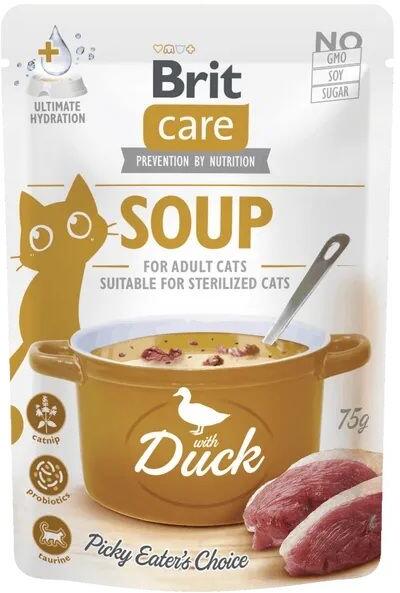 A Brit Care Cat Soup with Duck egy leves minden fajta felnőtt és ivartalanított macskának, mesterséges ízek és tartósítószerek nélkül. Kiváló íz és egészség kombinációja minden otthoni macska számára. Ez a leves nemcsak ízletes élményt nyújt macskájának, hanem fontos vízforrásként is szolgál, támogatva az általános egészséget.