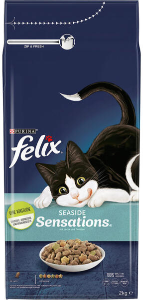 A zooplus. hu kínálatából: A Felix Sensations száraztápok minden adagja mögött sokféle tarka, ropogós és csodásan illatozó krokett keveréke rejtőzik. A feledhetetlen csirke-, pulyka-, marha- vagy lazac- és zöldség-íz ízek még az igényes macskákat is elkényezteti. Vitaminok és alapvető zsírsavak támogatják az egészséges macskaéletet, s csillogó szőrzetről és egészséges bőrről gondoskodhatnak. A krokettek teljesen mellőzik a mesterséges színező anyagokat, tartósítószereket és aromákat. Ízletes és kiegyensúlyozott kreáció - valódi élvezet minden kinti kalandornak és benti szobacicának, tökéletes utánpótlás erejük feltankolásához. Felix - olyan jó, mint ahogyan kinéz! A Felix Sensations száraz macskatáp jellemzői:Teljes értékű eledel macskáknak100% komplett és kiegyensúlyozottRopogós krokettekFinom csirke-, pulyka-, marha-, hal- és csirke-ízbenA-, D- és E-vitamin: támogatják a vitális cicaéletetTaurin: támogatja a szívműködést és a látás erejétEsszenciális zsírsavak: csillogó szőrzetről és egészséges bőrről gondoskodhatnakMesterséges színező anyagok, tartósítószerek és aromák nélkül Az egyes fajták jellemzői röviden: Felix Inhome Sensations: ízletes-tarka száraztáp-keverék ínyenc macskáknak. Kiegyensúlyozott eledel ropogós krokettekkel, pontosan a házban élő, benti macskák igényeihez szabva. Felix Farmhouse Sensations szárnyas: a finom krokettek nyújtotta, izgató színes-vidám, színes rágásélmény, csirke-, pulyka- és zöldség-ízzel. Komplett kiegyensúlyozott, különleges eledel. Felix Seaside Sensations lazac a finom krokettek nyújtotta, izgató színes-vidám, színes rágásélmény, lazac- és zöldség- ízzel. Komplett kiegyensúlyozott eledel éhes cicáknak. Felix Meaty Sensations hús: a finom krokettek nyújtotta, izgató színes-vidám, színes rágásélmény, marha csirke ízzel. Komplett kiegyensúlyozott eledel éhes cicáknak. Az egyes fajtákról az alábbi linkeken találhat bővebb információt:Felix Inhome SensationsFelix Seaside Sensations lazac zöldség