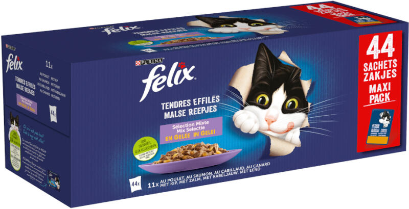 A zooplus. hu kínálatából: A Felix Fantastic ("So gut wie es aussieht") jumbopack 44 tasakot tartalmaz 4 fenséges ízváltozattal. Ezáltal gondoskodik cicája változatos étrendjéről. A nedvestápokat nemcsak finom íz jellemzi, hanem kiegyensúlyozott receptúra is. A Felix Fantastic teljes értékű összetételének köszönhetően alkalmas cicája mindennapi etetésére. Étvágygerjesztő hal- és húsfalatokból áll, melyek zamatos aszpikban mártóznak. Ez a macskaeledel minőségi összetevőkből készül mesterséges színezékek vagy tartósítószerek hozzáadása nélkül. A vegyes csomag a következőképpen tevődik össze:22 x csirke22 x marha11 x kacsa11 x bárány11 x tonhal11 x lazacA Felix Fantastic eledel jellemzői:Nedvestáp felnőtt macskák számáraMinőségi összetevők: kiváló minőségű alapanyagokkal Teljes értékű és kiegyensúlyozott: ideális a cica mindennapi etetéséreMesterséges színezékek és tartósítószerek nélkülÍzletes változatosság: különféle finom ízek egy csomagbanFinom falatok aszpikbanPraktikus tasakokban: a hosszan tartó frissességértHasználja ki kedvező ajánlatunkat!88 x 85 g Felix Fantastic ("So gut wie es aussieht") nedves macskatápok jumbo kiszerelésben nálunk mindig kedvező áron!Kérjük vegye figyelembe, hogy ez az ajánlat csak az 562122 termékszámon érvényes.