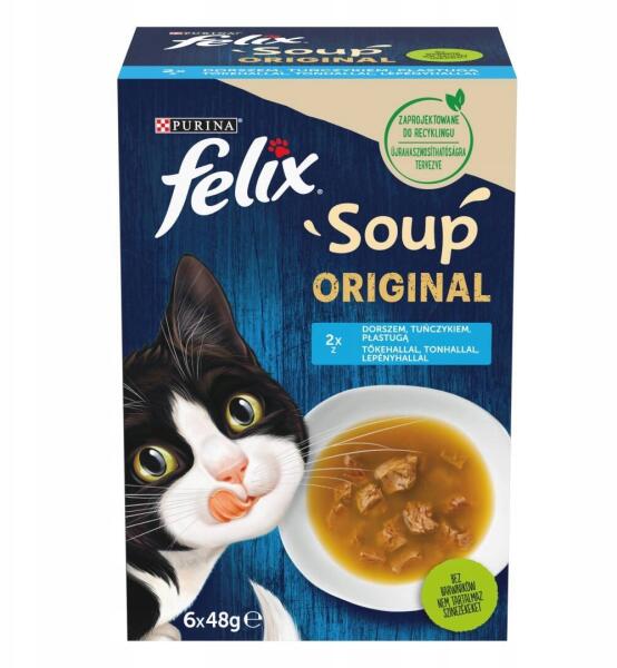 FELIX Soup Original Macskaeledel 6x48g Hal Ízek Tőkehal Tonhal Lapos