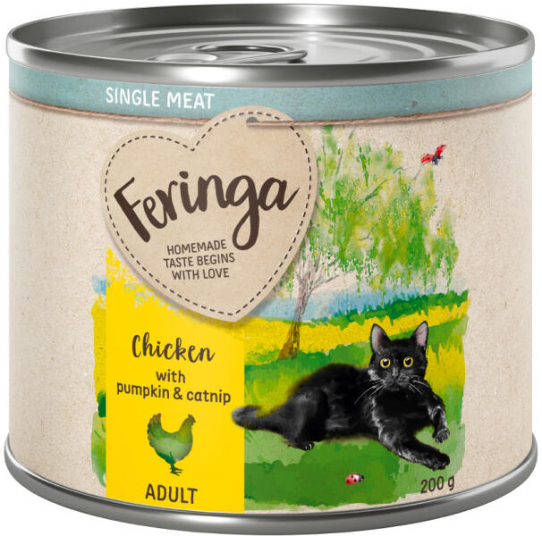 Feringa 12x200g Feringa Single Meat Menü Csirke, tök & macskamenta nedves macskatáp
