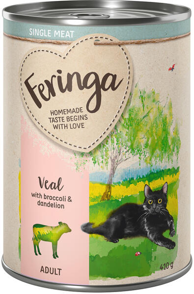 Feringa 6x410g Feringa Single Meat Menü Borjú, brokkoli & pitypang nedves macskatáp