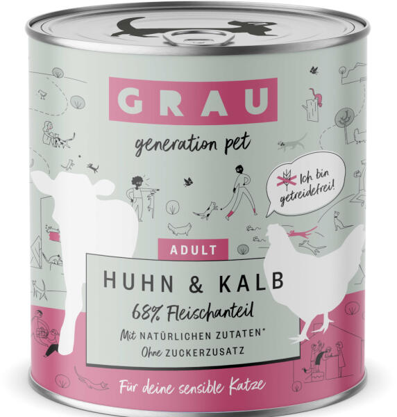 Grau 12x800g GRAU Csirke & borjú gabonamentes nedves macskatáp
