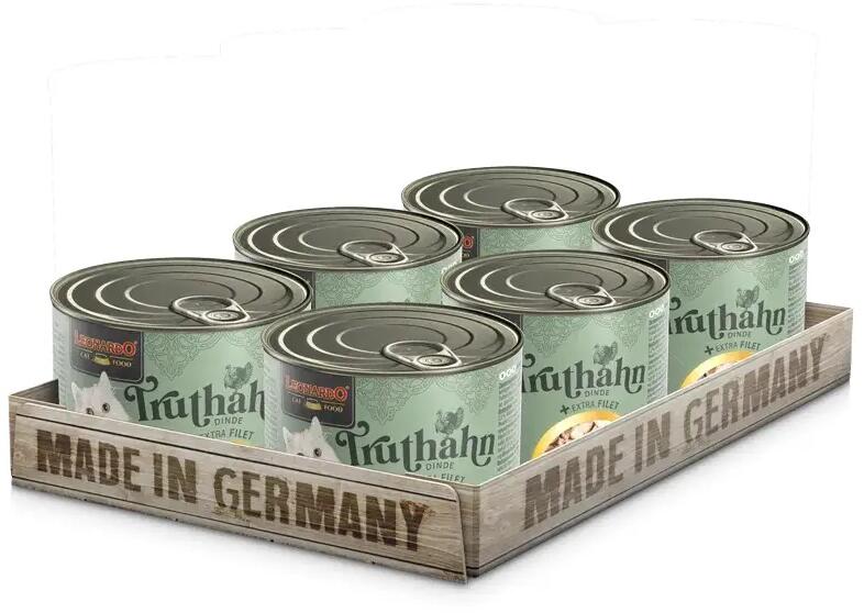 Leonardo pulyka + extra filé nedves macskatáp Teljes értékű nedves eledel felnőtt macskáknak ízletes pulykahúsból extra pulykahús filével A Leonardo receptúrája attól olyan egyedi, hogy a húsokat saját levükben, kíméletesen főzik, ami ellenállhatatlan rágási élményt garantál.   A hozzáadott lazacolaj biztosítja a macska számára szükséges zsírsavakat és hozzájárul a selymes szőrzethez. Törekszünk arra, hogy eledeleink ne csak ízletesek, hanem egészségesek is legyenek ezért nem tartalmaznak hozzáadott cukrot, mesterséges színezőanyagot, ízfokozót és tartósítószert. Ezenfelül kizárólag emberi fogyasztásra is alkalmas,  extra friss húsból készítjük tápjainkat.
