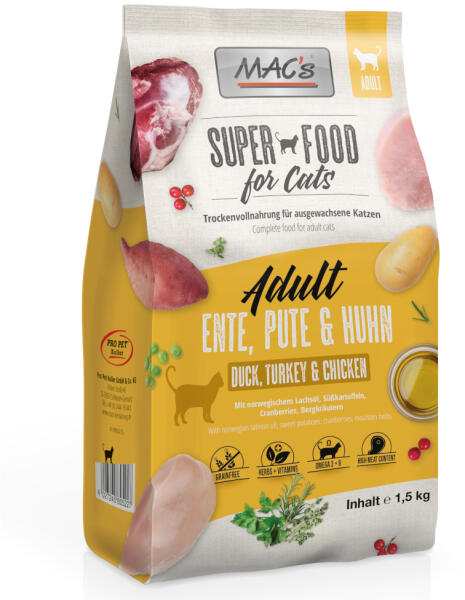 MAC's 1, 5kg MAC's Superfood Cat Adult kacsa, pulyka & csirke száraz macskatáp