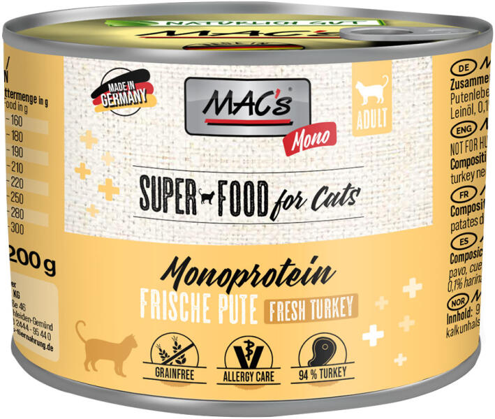MAC's 12x200g MAC´s Cat Sensitive pulyka nedves macskatáp