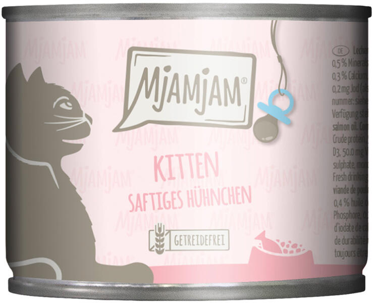 A zooplus. hu kínálatából: Ahhoz, hogy a kiscicákból méltóságteljes szobatigrisek váljanak, fajnak megfelelő és kiegyensúlyozott táplálékra van szükségük. A MjAMjAM Kitten mindent megad a kis bársonytalpúaknak, amire szükségük van az élet megfelelő kezdetéhez. A MjAMjAM Kitten sok húst tartalmaz, és lazacolajjal van gazdagítva, amely értékes omega zsírsavakat tartalmaz. A monoprotein receptúrának köszönhetően fajtánként csak egy fehérjeforrás található benne. Gabonaféléket nem tartalmaz, ami szintén hozzájárul a különösen jó emészthetőséghez. A MjAMjAM Kitten nem tartalmaz cukrot sem. Így biztos lehet benne, hogy csakis a legjobb kerül kiscicája tálkájába. A MjAMjAM Kitten 24 x 200 g jellemzői:Kiváló minőségű nedves eledel cicáknakÍnyencség a növésben lévő kiscicák számára: A növekedési szakaszhoz igazított összetétel, minden fontos tápanyagot tartalmazFinom íz: sok macska kedveliHúsban gazdag receptúra: jól illeszkedik a természetes, fajoknak megfelelő étrendbe, állati eredetű liszt nélkülMonoprotein: csak egyféle húst tartalmaz, amely az egyedüli állati fehérjeforrásként szolgálLazacolaj: értékes zsírsavak forrásakéntGabona- és gluténmentes: alkalmas érzékeny, allergiás és intoleranciás cicák számára isRegionális és természetes: a nyersanyagok főként helyi gazdaságokból származnakHozzáadott cukor nélkülNem tartalmaz mesterséges aromákat vagy tartósítószereketKíméletesen párolva: a tápanyagok és az ízek lehető legjobb megőrzését szolgáljaGyártás helye: Németország