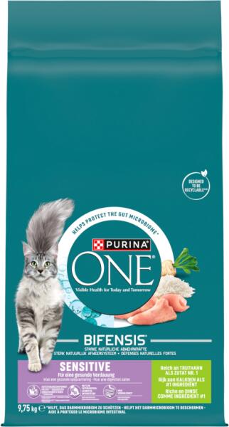 Purina One Sensitive pulyka és rizs felnőtt macskáknak 9,75 kgÖsszetevőkPulyka (18%) (csontokat, húst és bőrt is beleértve)