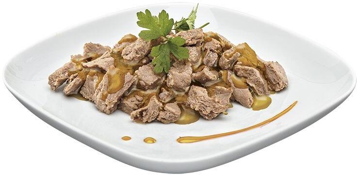 összetevők: < /strong>Csirke: hús és állati melléktermékek (80% filében*, 4% csirke), növényi fehérjekoncentrátumok, növényi melléktermékek (0,4% inulin), ásványi anyagok, cukrok. * A filé általában a termék 34,5 %-át teszi ki. Tartósítószerek nélkül. Pulyka: hús és állati melléktermékek (80% filében*, 4% pulyka), növényi fehérjekoncentrátumok, növényi melléktermékek (0,4% inulin), ásványi anyagok, cukrok. * A filé általában a termék 34,5 %-át teszi ki. Színezékektől és tartósítószerektől mentes. Analitikai összetevők: nedvesség 82%, nitrogén 8,5%, zsír 4,5%, hamu 2%, rost 0,4% Táplálkozási adalékanyagok/kg: D3-vitami n160 m. j. E-vitamin100 mgcink (cink-szulfát-monohidrát formájában)10 mgmangán (mangán-oxid formájában)2 mgréz (réz-szulfát-pentahidrát formájában)1,2 mgjód (kalcium-jodát, vízmentes kalcium-jodát formájában)0,2 mgtaurin520 mgbiotin100 μg Táplálási útmutató - Ajánlott napi adag: Ezek az utasítások csak tájékoztató jellegűek. Az egyéni macskaszükséglet ettől az útmutatótól eltérhet a macska korától, állapotától és aktivitási szintjétől függően. Egy átlagos méretű, 3-6 kg súlyú macska napi 255-450 g táplálékot igényel, két etetési adagra elosztva. Először a feltüntetett napi adagot etesse, majd fokozatosan igazítsa a napi adagot.