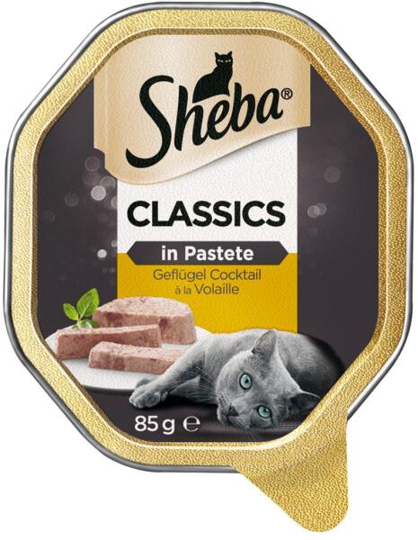 Sheba Classics ízletes és egészséges pástétom tálcán baromfihússal felnőtt macskák számára.