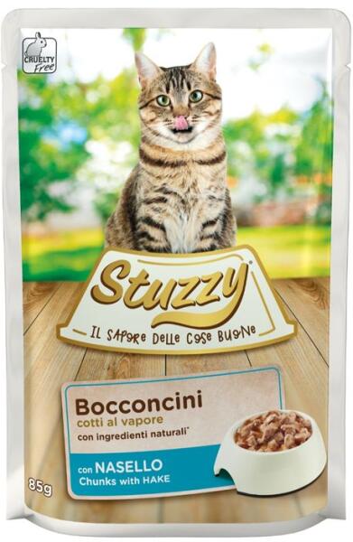 Stuzzy Cat Chunks teljes értékű eledel párolással készítve, mely még vonzóbbá teszi a macskák számára.