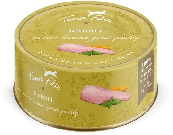 Minden összetevő 100%-ban emberi minőségűNagyfokú elfogadottságÁllatorvosokkal közösen kifejlesztveNincs szükségtelen adalékanyagNagyszerű illatNincs állatkísérlet összetevők:  nyúlhús (90%), butternut tök (4%), paradicsompor, repceolaj, macskamenta*, ásványi anyagok. Táplálékkiegészítő adalékanyagok/kg:  A-vitamin (3a672a): 1000 NE, D3-vitamin (3a671): 200 NE, E-vitamin (3a700): 60 NE, réz (3b405): 2,5 mg, mangán (3b502): 2,5 mg, jód (3b202): 1 mg, cink (3b603): 16 mg, taurin (3a370): 2750 mg Analitikai összetevők:  Fehérje 12,3%, zsír 4,5%, nyersrost 0,2%, nyershamu 1,6%, nedvesség 81% Arány  hús : zöldségek/gyümölcsök/növények : egyéb összetevők = 90% : 5% : 5% Táplálási javaslat:  Felnőtt, normál testsúlyú macska: kb. 60 g/testsúlykilogramm naponta. Példa: 4 kg-os macska kb. 240 g naponta.